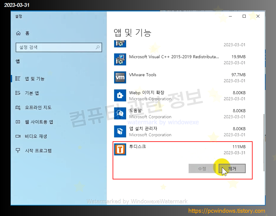 설치한 프로그램을 제거하는 방법입니다.