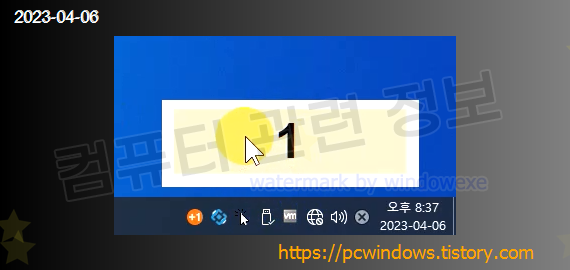 프로그램을 실행하면 작업표시줄 오른쪽 시스템 트레이에 주황색 +1 아이콘이 생깁니다.