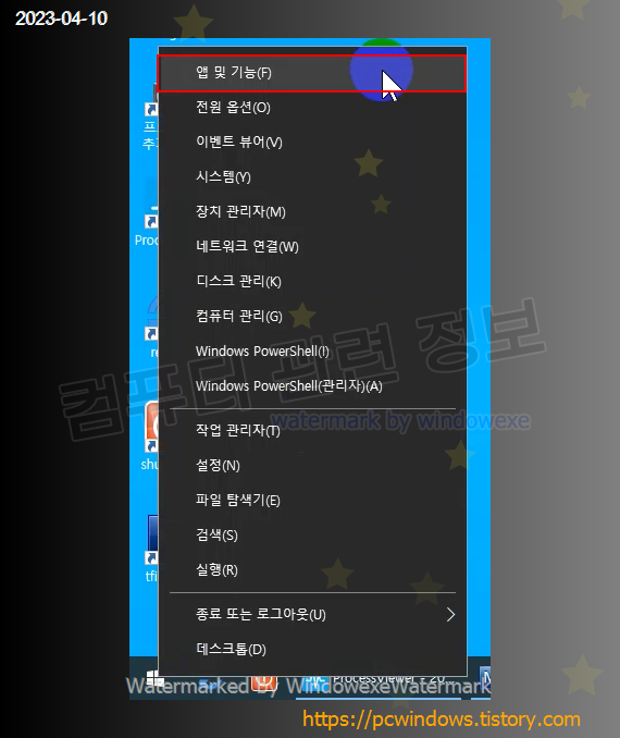 시작 - 우클릭 - 앱 및 기능 실행.