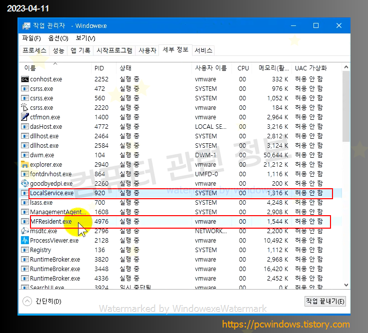 LocalService.exe , MFResident.exe 프로세스는 부팅시마다 자동으로 실행됩니다.