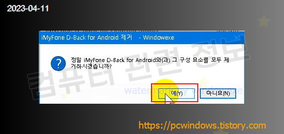 프로그램을 삭제할건지 물어보는데 예 클릭.