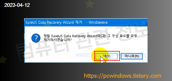 프로그램을 삭제할건지 물어보는데 예 클릭.