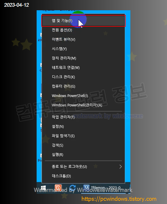 시작 - 우클릭 - 앱 및 기능 실행.
