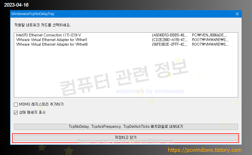 파일명은 변경하지 마세요. WindowexeTcpNoDelayTray가 아니면 실행이 되지 않습니다.
