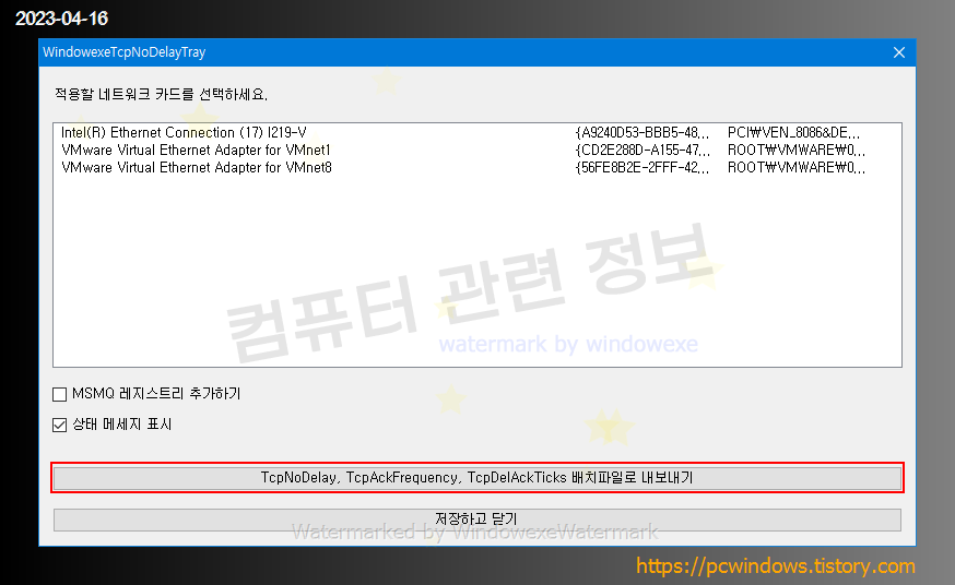 WindowexeTcpNoDelay_reg_Add.bat (레지스트리 등록파일)