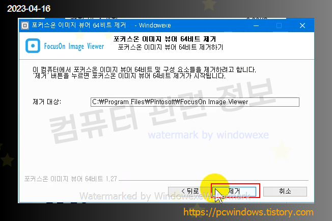 포커스온 이미지 뷰어 64비트 를 찾아서 제거클릭