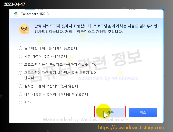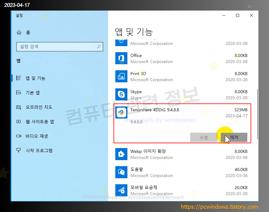 Tenorshare 4DDiG를 찾아서 제거클릭