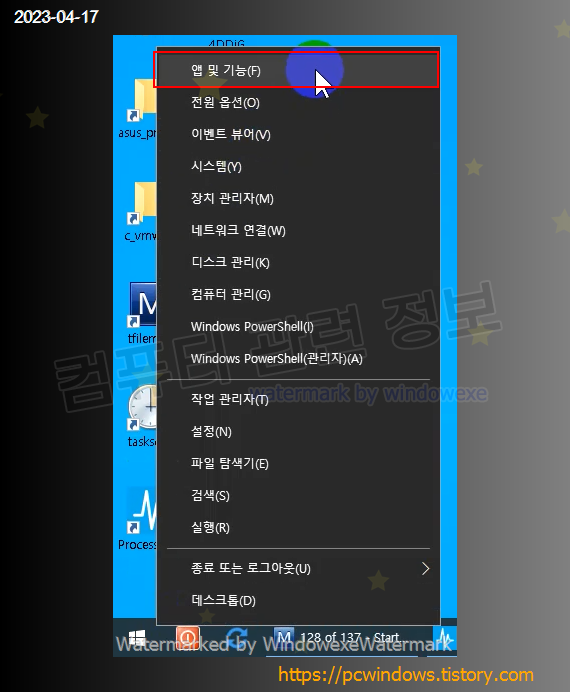 시작 - 우클릭 - 앱 및 기능 실행.
