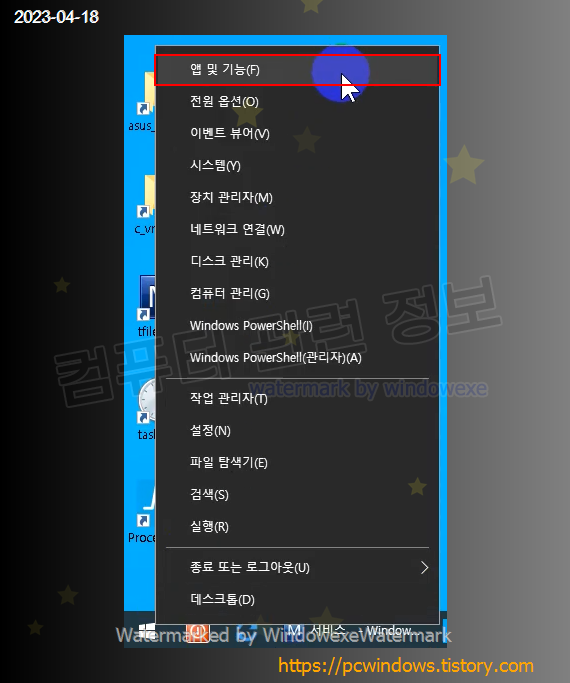 시작 - 우클릭 - 앱 및 기능 실행.