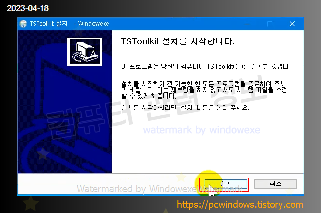설치파일 실행. 설치 클릭