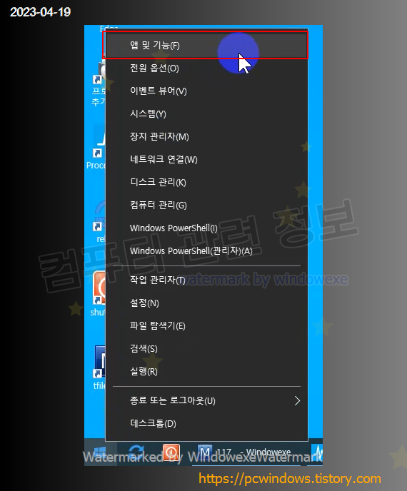 시작 - 우클릭 - 앱 및 기능 실행.