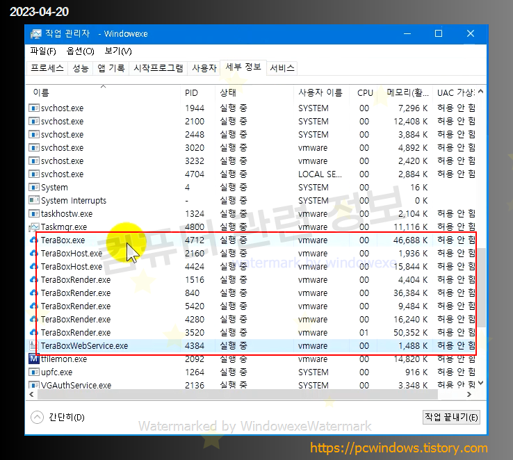 TeraBox.exe , TeraBoxHost.exe , TeraBoxRender.exe , TeraBoxWebService.exe 프로세스가 실행되고 있네요.