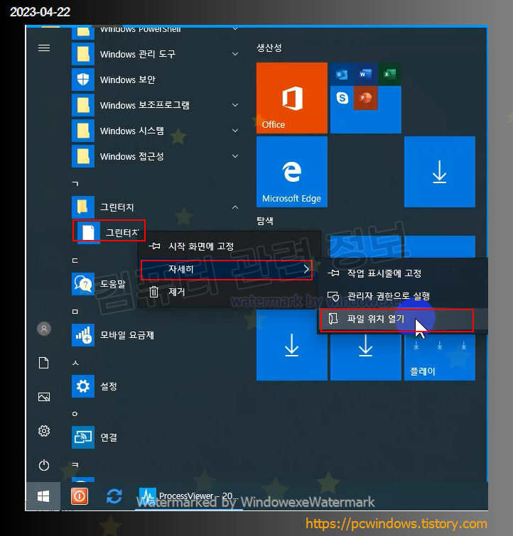 프로그램 삭제후 시작 메뉴에 그린터치 프로그램이 남아 있는데요.