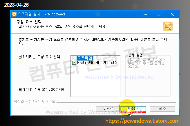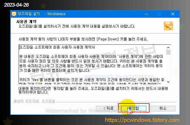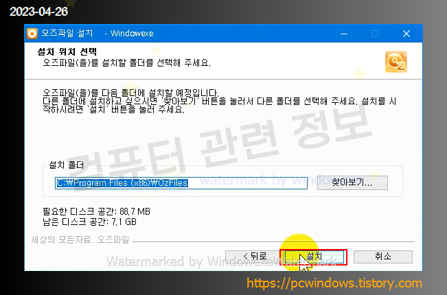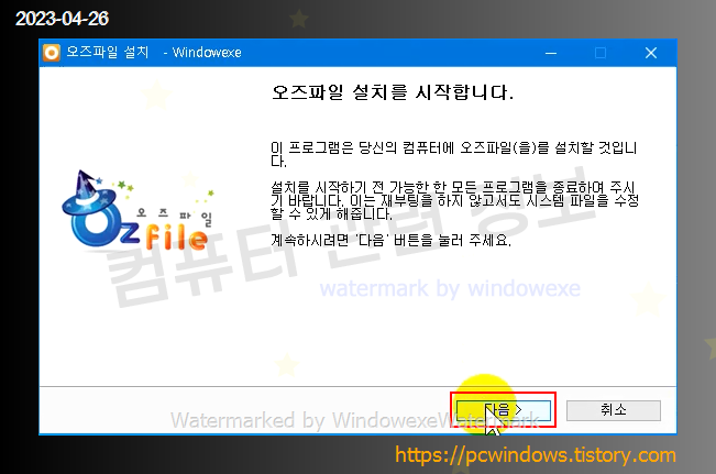 다운로드 받은 파일을 실행하세요. 프로그램 설치 마법사가 실행됩니다.