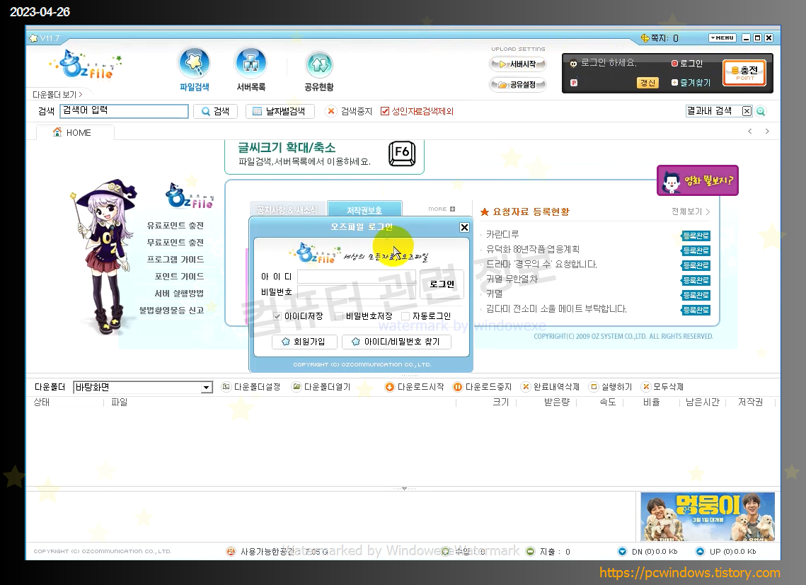 일반적인 웹하드 파일 공유 사이트들은 그리드 딜리버리를 사용하고 있는데요. 유독 여기만 그리드를 사용하지 않는듯 합니다. 회원가입이 필요한 상태라서 실제로 가입해서 웹하드에 있는 파일을 다운로드를 받지는 않았지만 다운로더 프로그램을 설치할 때는 그리드와 관련한 파일은 하나도 생성되지 않았습니다.