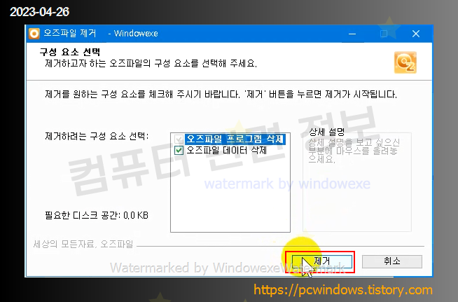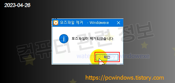 프로그램이 정상적으로 제거되었습니다. 확인 클릭.