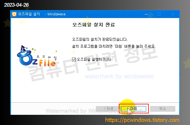 프로그램 설치가 완료되었습니다. 마침 클릭