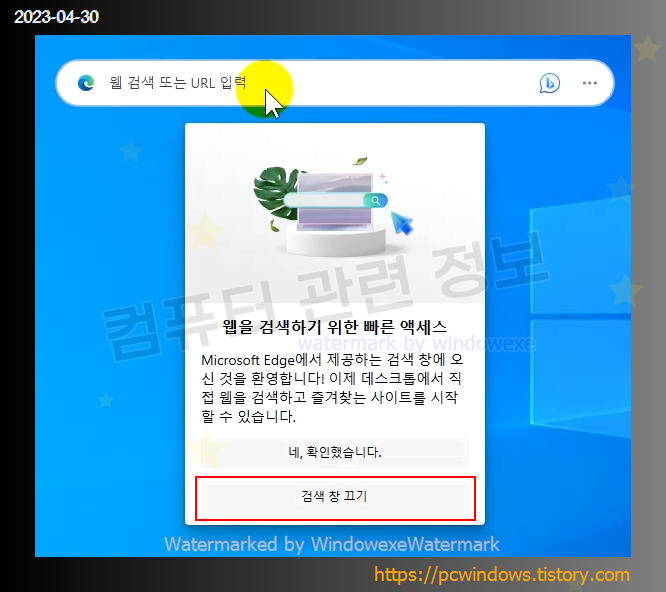 얼마전에 마이크로소프트 엣지 웹브라우저가 업데이트가 되면서 바탕화면에 웹 검색창이라는 기능이 새로 생겼는데요.