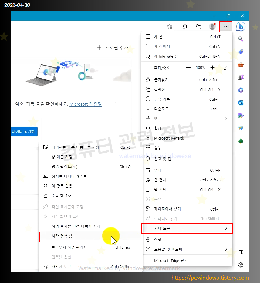 윈도우 11의 경우 Edge 표시줄 시작