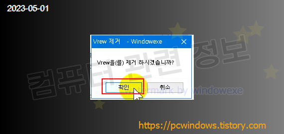 프로그램을 삭제할건지 물어보는데 예 클릭.