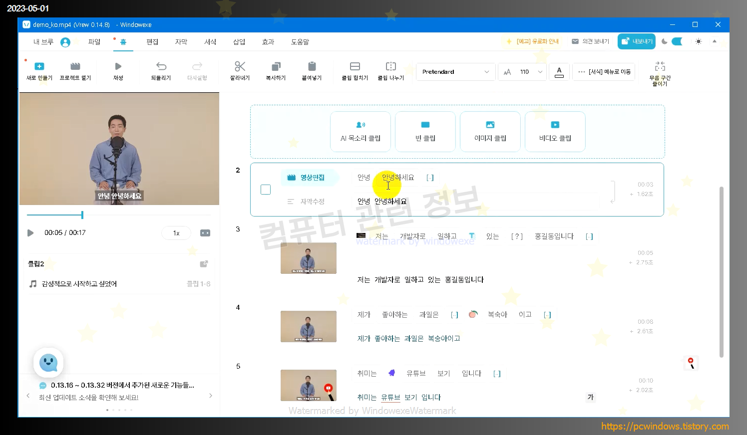 동영상 편집, 자막 생성, 자막 삽입, 목소리 변환, AI 음성 인식, 이미지 및 영상 소스 제공