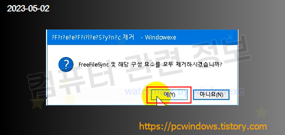 프로그램을 삭제할건지 물어보는데 예 클릭.