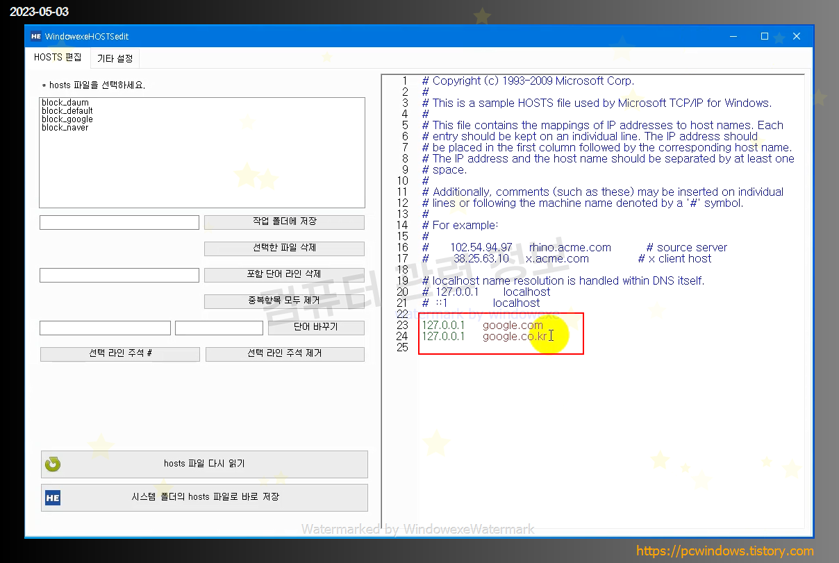 다음, 구글, 네이버 사이트 차단용 파일, 초기화하는 기본 파일