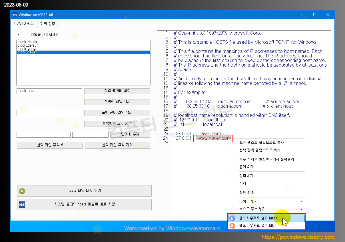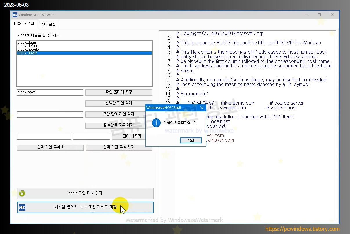 파일명은 변경하지 마세요. WindowexeHOSTSedit 가 아니면 실행이 되지 않습니다.