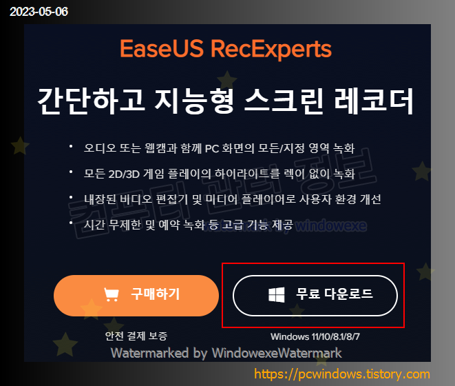 이지어스에서 제공하는 컴퓨터 화면 녹화 프로그램, EaseUS RecExperts 다운로드, 설치 및 제거방법, 프로그램 설치후 생성되는 파일정보에 대해서 자세히 알아보겠습니다.