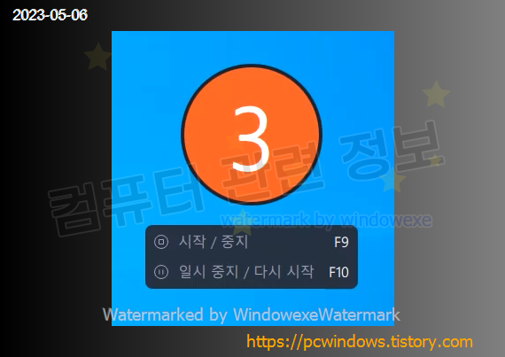 녹화 시작 카운트다운 메세지입니다.