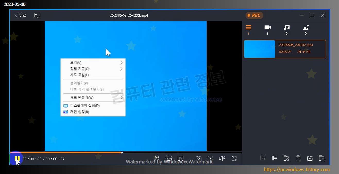 녹화가 완료되면 내장 플레이어로 바로 실행됩니다.