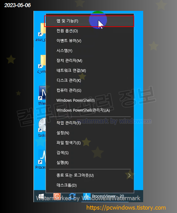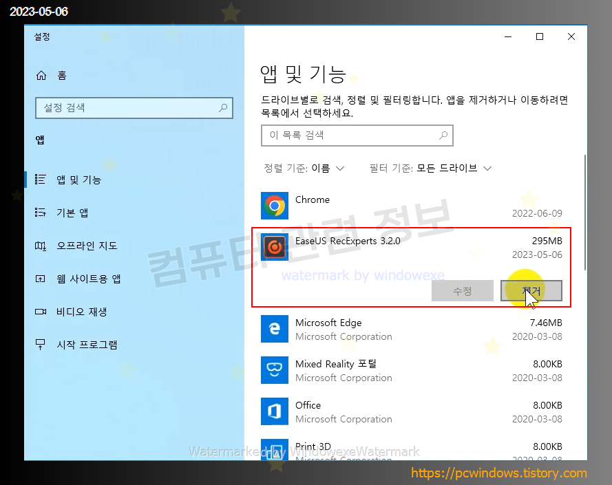 시작 - 우클릭 - 앱 및 기능 실행.