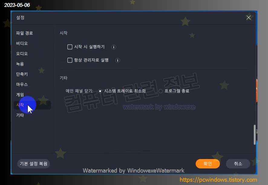 시작 설정