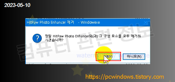 프로그램을 삭제할건지 물어보는데 예 클릭.