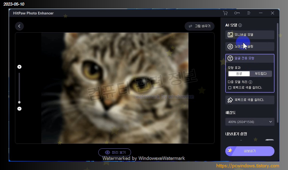 잠깐 테스트해봤는데 HitPaw 홈페이지에서 안내하고 있는 것 처럼 사진이 깔끔하게 나오지는 않더라고요.