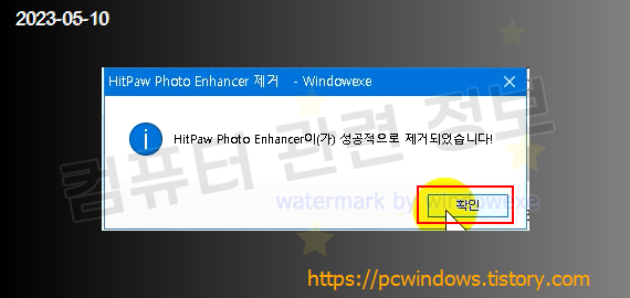 프로그램이 정상적으로 제거되었습니다. 확인 클릭.