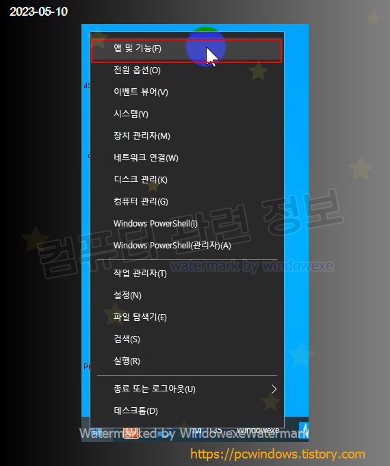 시작 - 우클릭 - 앱 및 기능 실행.