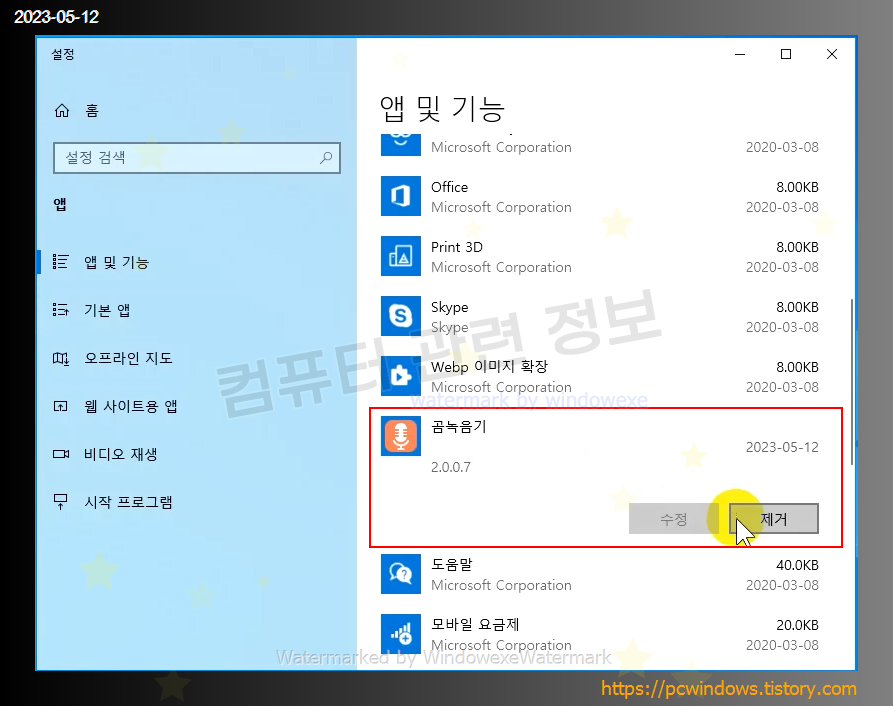 곰녹음기를 찾아서 제거클릭