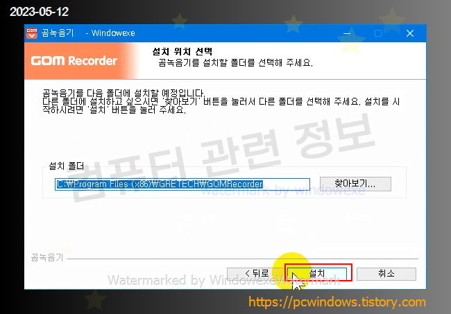 설치 클릭