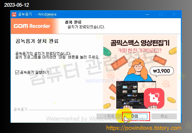 프로그램 설치가 완료되었습니다. 마침 클릭