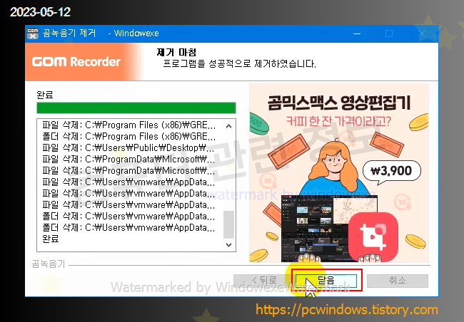 프로그램이 정상적으로 삭제되었습니다.