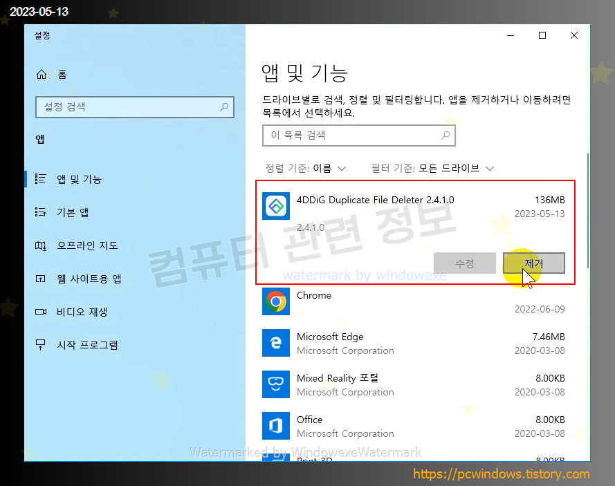 프로그램 설치 및 삭제 테스트 영상입니다. 본문에 있는 내용인데 추가로 올립니다.