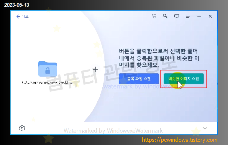 다시 메인화면으로 돌아와서 비슷한 이미지 스캔을 클릭해보겠습니다.
