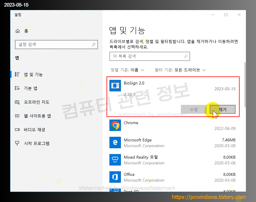 프로그램 설치 및 삭제 테스트 영상입니다. 본문에 있는 내용인데 추가로 올립니다.