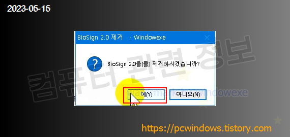 프로그램을 삭제할건지 물어보는데 예 클릭.
