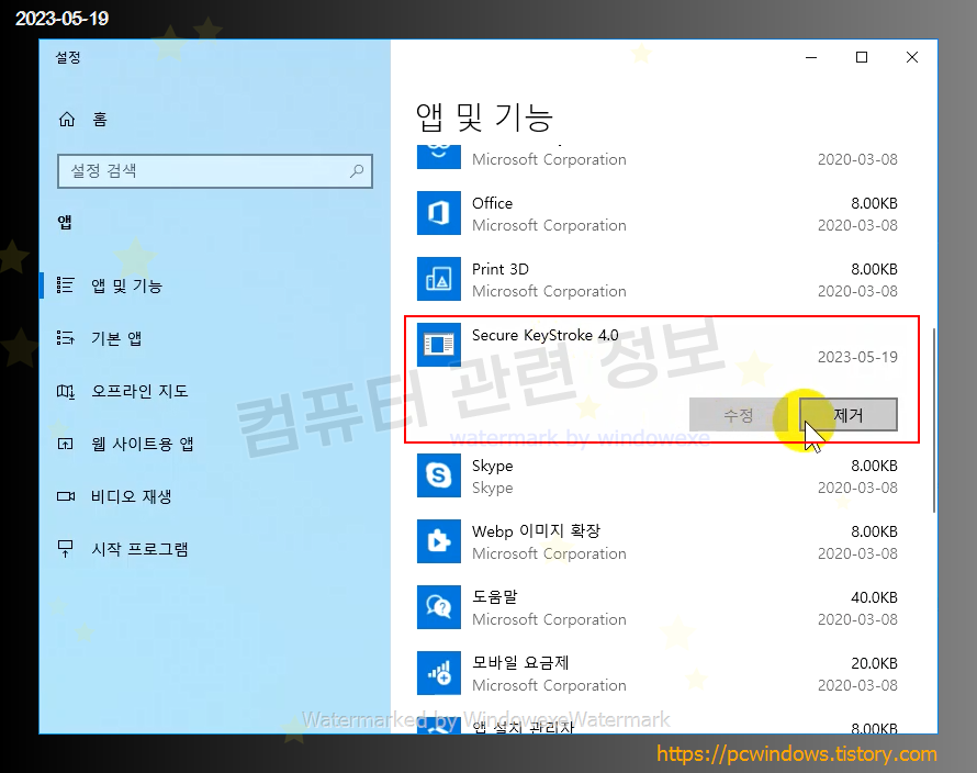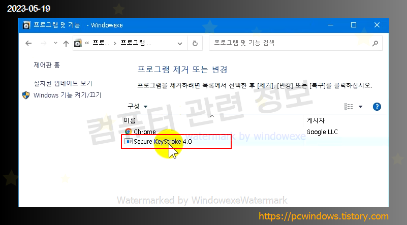 Secure KeyStroke 4.0 를 찾아서 제거클릭