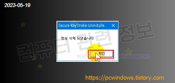 프로그램이 정상적으로 제거되었습니다. 확인 클릭.