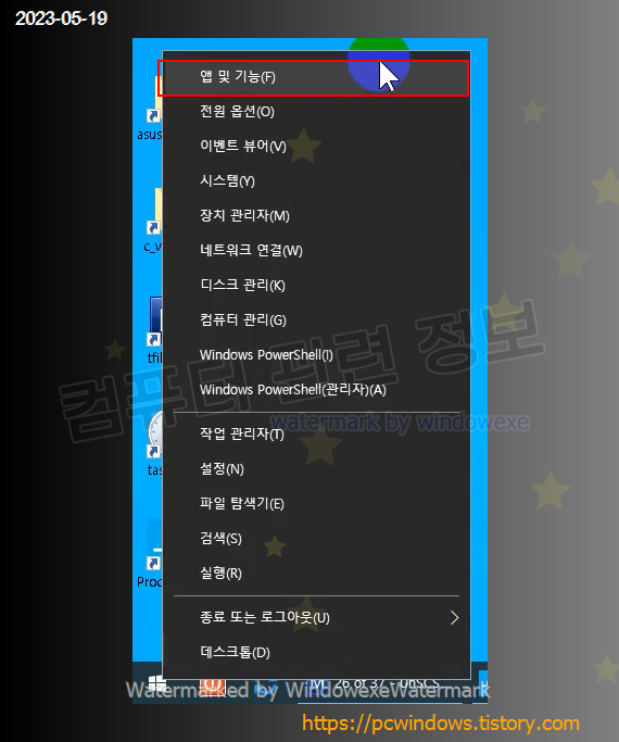 시작 - 우클릭 - 앱 및 기능 실행. (윈도우 11에서는 설치된 앱)