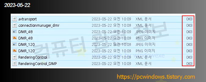 파일의 크기가 모두 0바이트인것을 확인할 수 있습니다.