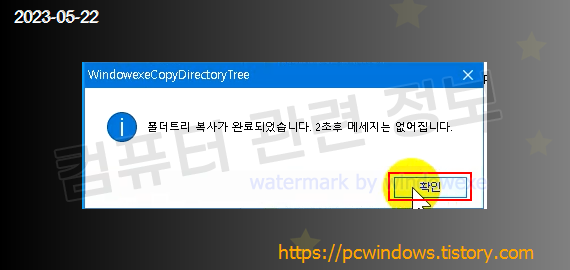 폴더 트리 복사가 완료되었습니다 확인 메세지가 나오고 프로그램은 자동 종료가 됩니다.
